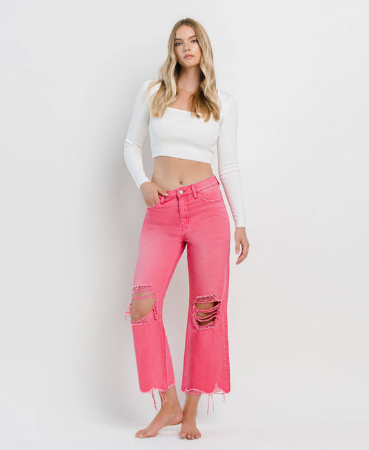 90'S VINTAGE SUPER HR CROP FLARE PINK