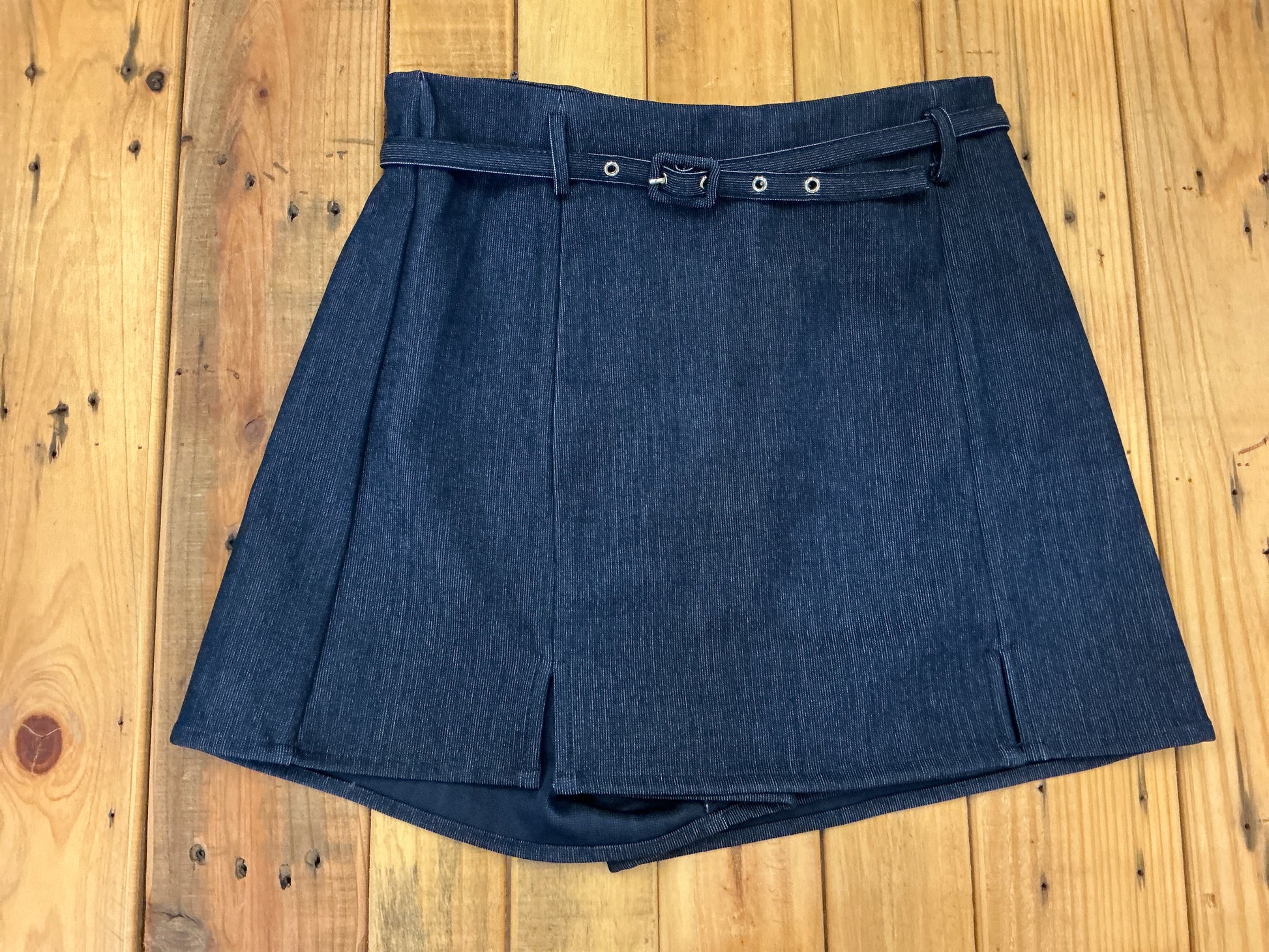 High Waist Split Thigh Belted Skort - Navy