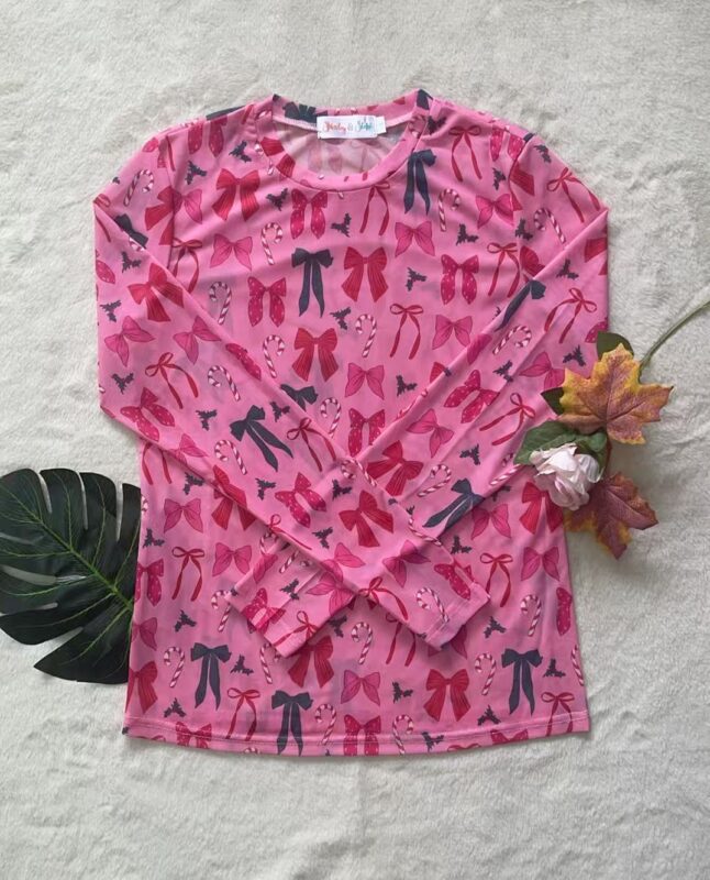 Pink Bow Mesh Top